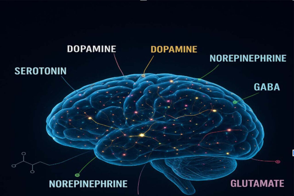 - Dopamin: Ödül, motivasyon ve motor hareketlerin kontrolünde temel rol oynayan, beyindeki “haz ve tatmin” mekanizmasıyla doğrudan bağlantılı nörotransmitterdir.